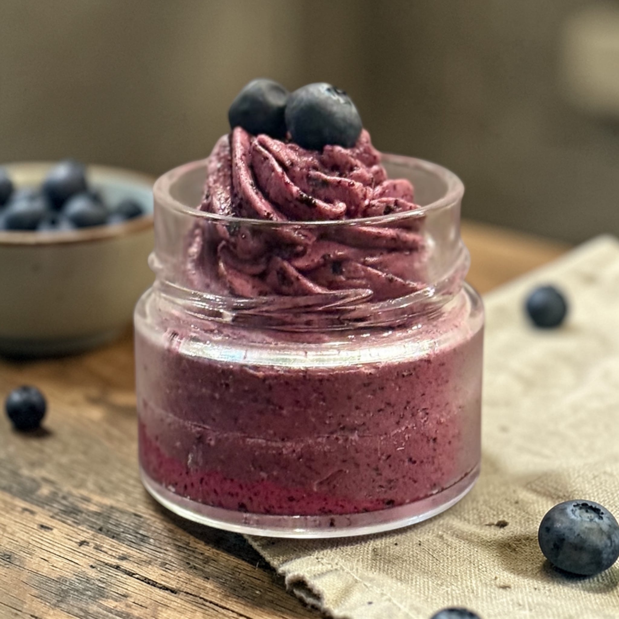 砂糖不使用なのでブルーベリー本来の旨味が味わえるバターです。砂糖の代わりにスーパーフードのデーツを自家製シロップに加工し混ぜ合わせています。デーツシロップの甘さとブルーベリーの旨味がマッチした優しい味のバターです。